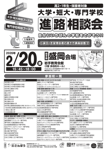 2026年2月20日(金) 大学・短期大学・専門学校 進路相談会【盛岡会場】