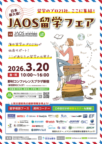 2026年3月20日(金・祝) JAOS留学フェア 2026春