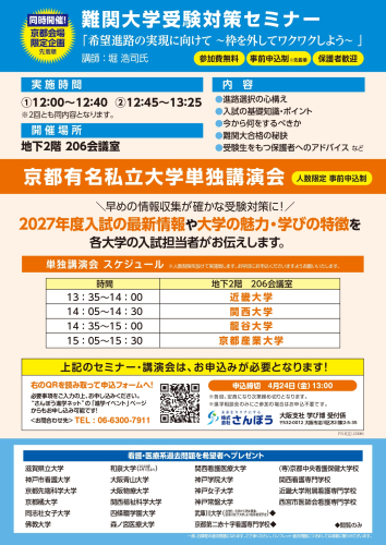 難関大学受験対策セミナー、有名私立大学単独講演会開催!