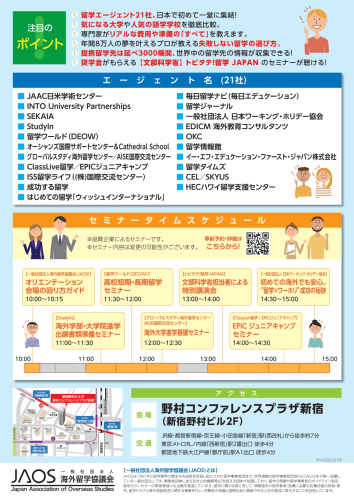 2026年3月20日(金・祝) JAOS留学フェア 2026春