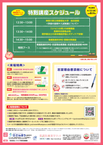 【横浜会場】4月25日(土)看護・医療・医歯薬・福祉・リハビリ・心理・医療事務系進学相談会