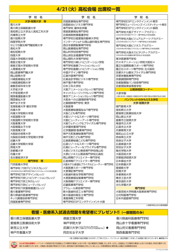 4月21日(火)大学・短期大学・専門学校 等 進学相談会 【高松会場】in レクザムホール【香川県県民ホール】(小ホール棟5階 多目的大会議室「玉藻」)