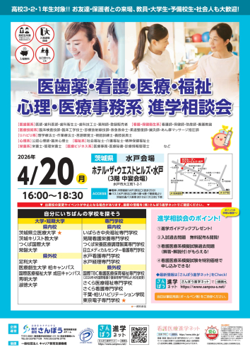 【水戸会場】4月20日(月)医歯薬・看護・医療・福祉・心理・医療事務系 進路相談会