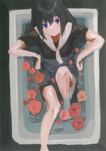 制服に最後に袖を通した日を彩ろうとしている女の子を描きました。