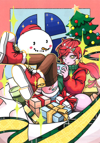 背景に力を入れたので見てください!!大切な人へプレゼントを贈る女の子を描きました。