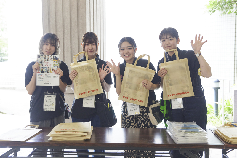 京都文教大学のオープンキャンパスでは、学生が企画するオープニングに始まり、教員・先輩学生による学部・学科の紹介、キャンパスツアー、大学での学びを体験できる機会、入学試験の説明等を行います。