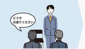 受付に入った時点から面接試験は始まっています。まずはあいさつ。面接で来校した旨を告げます。明るく快活に。