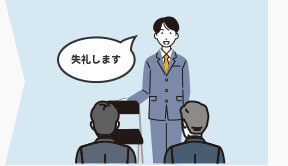 その後ドアの前に歩いていき、面接官の方へと向き直り「失礼します」といってお辞儀してください。言葉と動作が被らないように順番を意識し、丁寧な動作を心がけて行動しましょう。